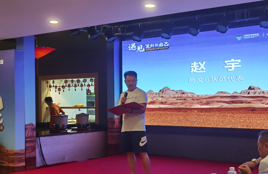 “商戈6”队员代表赵宇分享了他参与戈壁之行后身心变化的历程,他表示:“商戈5”的出征口号言犹在耳, 一晃就是一年多,戈壁的情怀却日久弥新。一次戈壁一生情缘,期待“商戈6”与大家再一次完成生命的绽放。