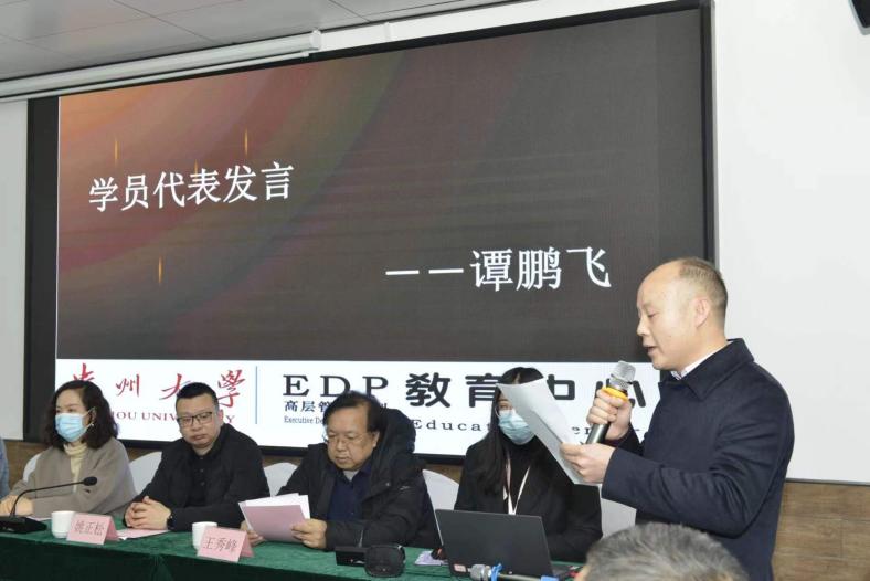 贵州省铜仁市乡村振兴局党组成员、副局长谭鹏飞作为学员代表发言时表示:在我们最需要更新和充电提升的时候,我们获得了这次培训学习、交流借鉴、开阔视野、提升能力的机会,来更好履行推进乡村振兴工作的本领。我们会倍加珍惜难得的学习机会,切实学习好、运用好本次培训内容,提高自身素质,端正学习态度,认真学习,掌握消化培训内容,展现出乡村振兴干部良好的风貌和风采,圆满完成培训任务。