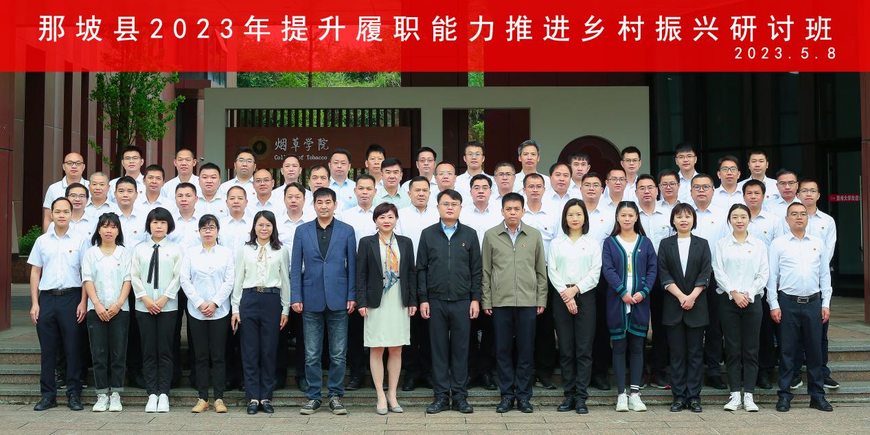 2023年5月8日上午,由中共那坡县委组织部主办,贵州大学承办的广西壮族自治区那坡县2023年提升履职能力推进乡村振兴研讨班开班仪式在贵州大学西校区烟草学院108教室顺利举行。来自广西壮族自治区那坡县各乡(镇)党委书记、人大主席、县农村工作(乡村振兴)领导小组成员单位主要领导、分管领导共计63人开始接受为期5天的培训。