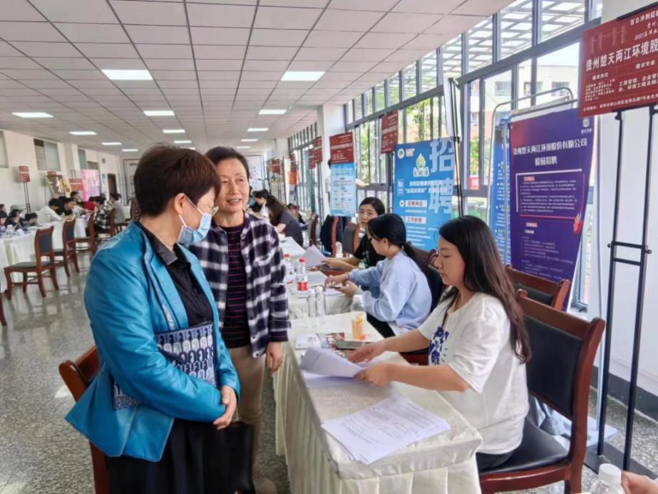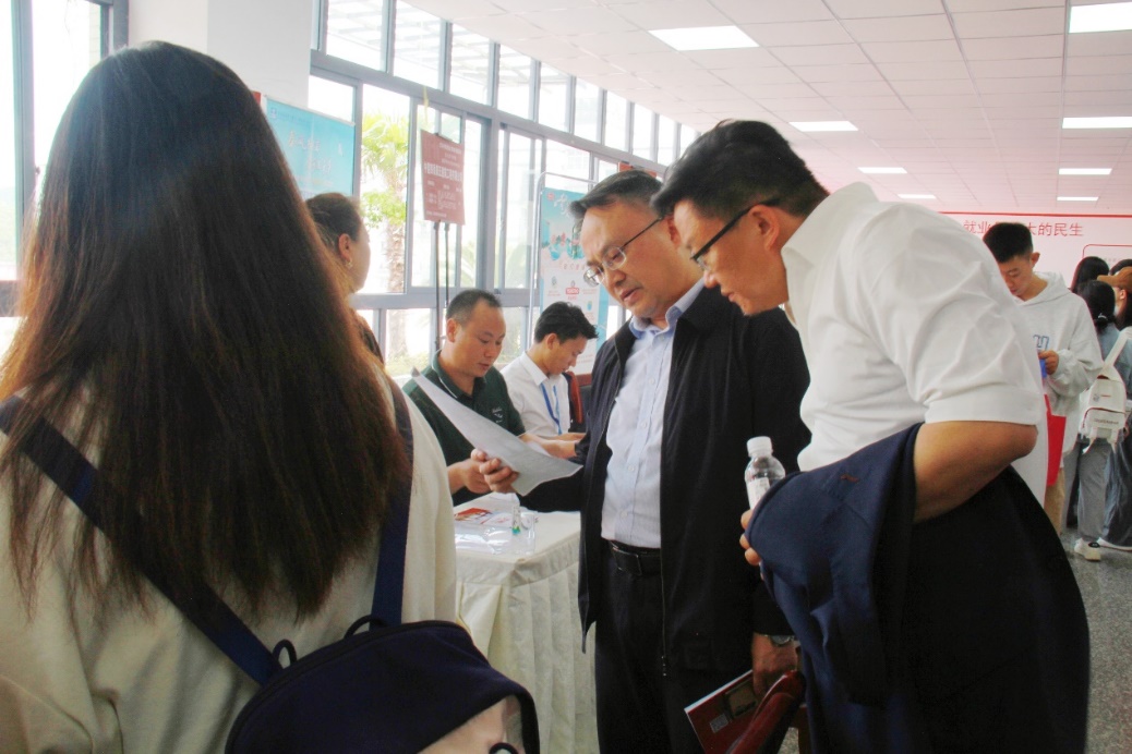 校党委副书记令狐彩桃(左一)亲临招聘会现场询问开展情况
