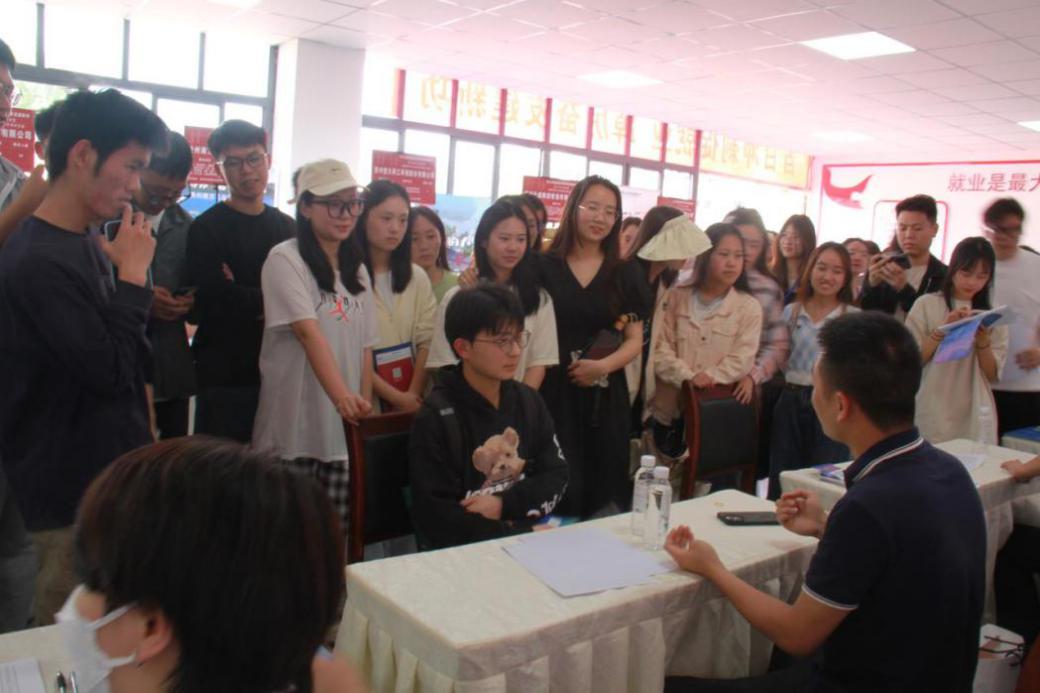 李烨院长(右三)在现场询问招聘会情况