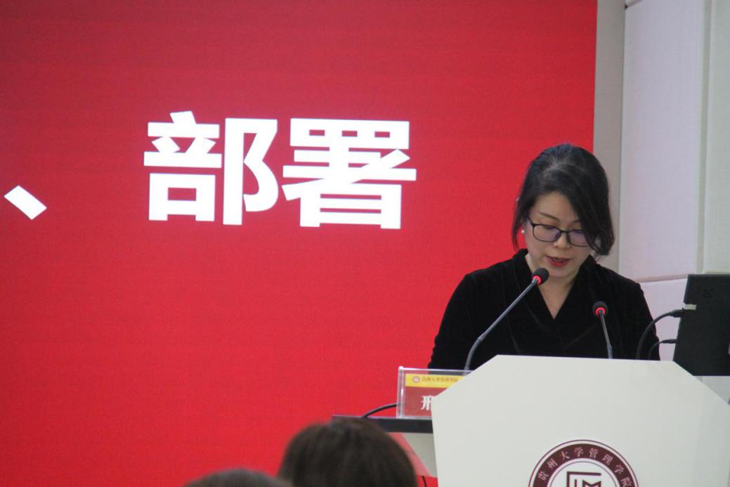 贵州大学正处级组织员、管理学院党委副书记(主持党委工作)周莉莉与全体教职工共同深入学习党的二十大精神,她指出,教育是国之大计、党之大计。而培养什么人、怎样培养人、为谁培养人是教育的根本问题。育人的根本在于立德。高校要办好人民满意的教育,教师更要贯彻好师德师风建设,要努力打造无私奉献的师魂、诚实正直的师德、全面发展的师观、教书育人的师能。