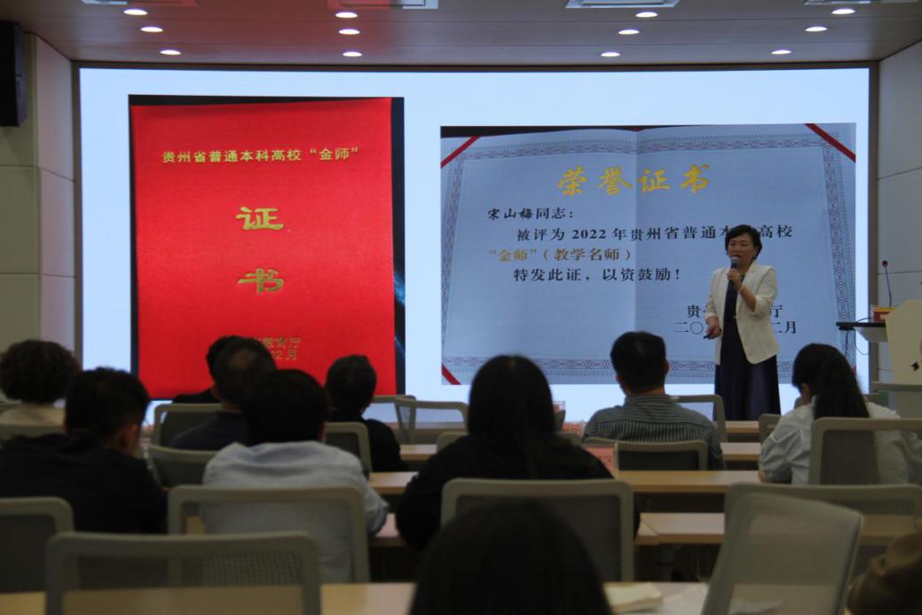 为题,分享了自己发表高水平论文的经验。实现了贵州大学和贵州省在UTD24期刊发表论文“零”突破,标志着贵州大学教师在运营管理/供应链管理研究领域跻身国际前沿水平。2022年贵州省“金师”(教学名师)宋山梅副院长本着“授知为本,授德兼行”的教学理念,分享了自己从教40年的感悟和心得。