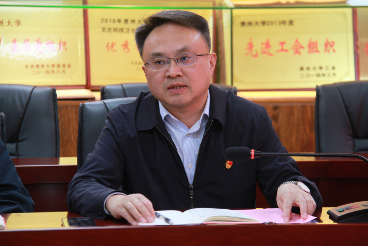 贵州大学党委委员、管理学院院长李烨同志领学习近平总书记在全国高校思想政治工作会议上发表的重要讲话和习近平总书记在哲学社会科学工作座谈会上发表的重要讲话。李烨同志深入浅出地为大家讲解两个重要讲话的核心要义,并联系实际指出习近平总书记的两个重要讲话事关高校的发展,需要更加系统、深入、细致地进行学习,要学会贯通、学以致用。