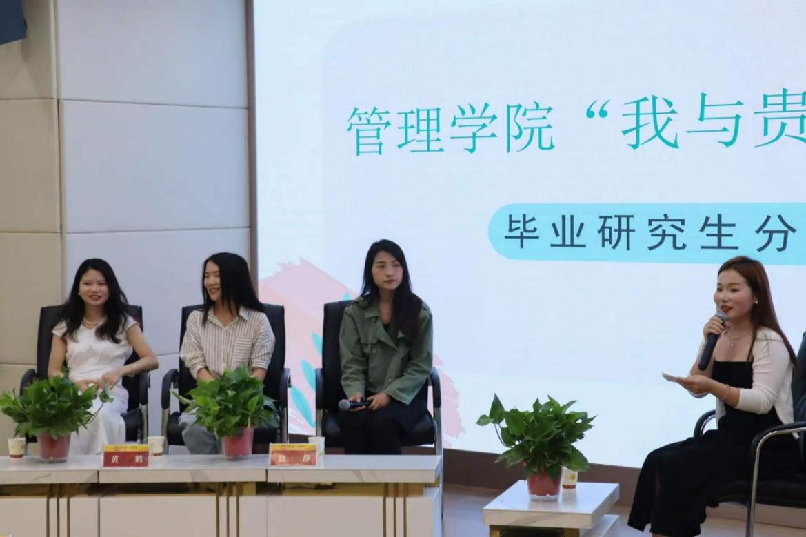 发扬优秀毕业研究生榜样精神,引导我院研究生踔厉奋发,笃行致远,以更加昂扬的姿态、更加饱满的状态面对学习和生活,全面提升自我素质。6月14日上午,“我与贵大的故事”——管理学院2023届硕士研究生毕业分享会在东校区致远楼三楼报告厅举行。管理学院党委副书记邓琳出席会议,党政办主任徐兰、研究生会秘书长车婧娴、研究生兼职辅导员龚潇潇、研究生科罗敬老师及全院研究生参加分享会。2020级管理科学与工程专业研究生莫姝、黄鹤,2020级企业管理专业研究生饶静受邀作为优秀毕业研究生代表,作分享汇报。